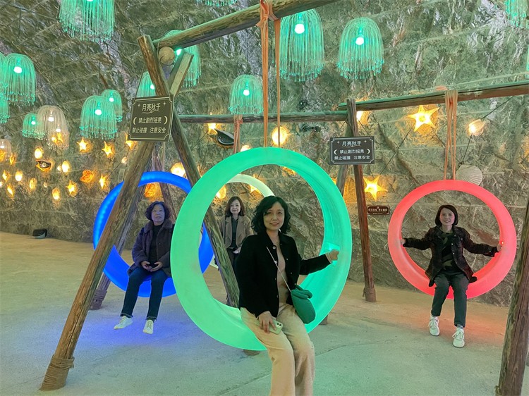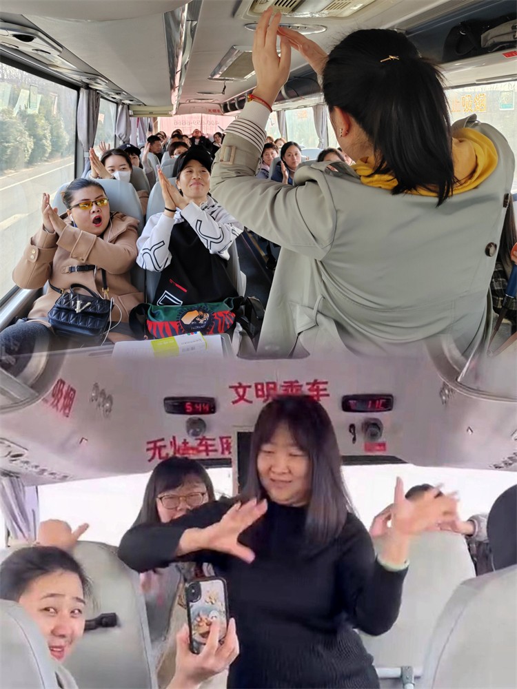 在一個(gè)多小時(shí)的車(chē)程中,工會(huì)女工委員們?yōu)榇蠹以敿?xì)介紹了鄭國(guó)渠的歷史背景,組織了猜歌曲、猜數(shù)字與桌操舞蹈等小活動(dòng),大家紛紛參與到互動(dòng)游戲中來(lái),車(chē)廂中彌漫著歡樂(lè)喧鬧的輕松氣氛。