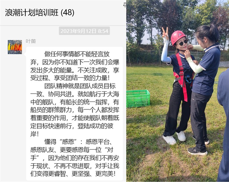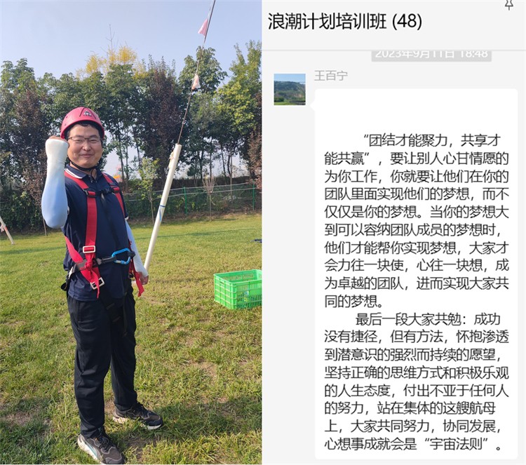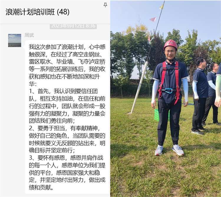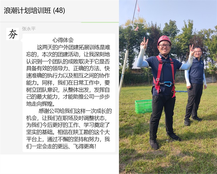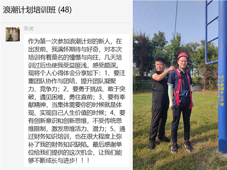 2023年9月6日--8日,陜西工勘院青年管理干部人才續(xù)航項(xiàng)目“浪潮計(jì)劃”培訓(xùn)班(第三期)圓滿結(jié)束。為期兩天的戶外拓展培訓(xùn)和一天的《非財(cái)務(wù)人員的財(cái)務(wù)管理知識(shí)》理論培訓(xùn),給大家?guī)?lái)了不同尋常的精神食糧。本次培訓(xùn)激發(fā)了學(xué)員們?cè)诶щy面前齊心協(xié)力、勇于承擔(dān)的工作斗志和心存感激、樂(lè)于奉獻(xiàn)、甘當(dāng)孺子牛的工作熱情,充分展現(xiàn)了參訓(xùn)人員凝心聚力,滿懷激情,攜手并進(jìn),共享成果的精神面貌。培訓(xùn)結(jié)束后,學(xué)員們感悟頗多,紛紛在微信群留下感言 :